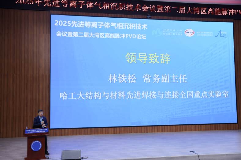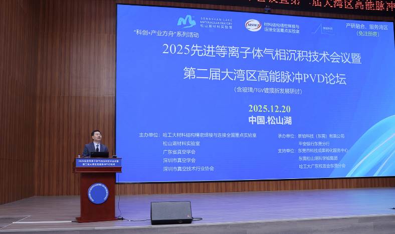 2025年12月20日,由哈尔滨工业大学材料结构精密焊接与连接全国重点实验室牵头主办的“2025先进等离子体气相沉积技术会议暨第二届大湾区高能脉冲PVD论坛”在东莞松山湖成功举行。本次大会主席由我实验室田修波教授担任。会议以“产研融合、生态发展”为主题,邀请来自北京大学、香港理工大学、华南理工大学、松山湖材料实验室等知名科研机构,以及深圳矩阵科技、广东汇成真空、重庆玻芯成等产业链核心企业的16位专家学者作大会报告,围绕高能脉冲PVD及TGV技术在半导体封装、光学窗口、功能涂层等领域的前沿进展与产业应用展开深入研讨。华为、北方华创、华星光电、荣耀、Oppo等企业代表共计300余人参会,彰显了哈工大依托全国重点实验室平台推动产学研协同创新的引领作用。